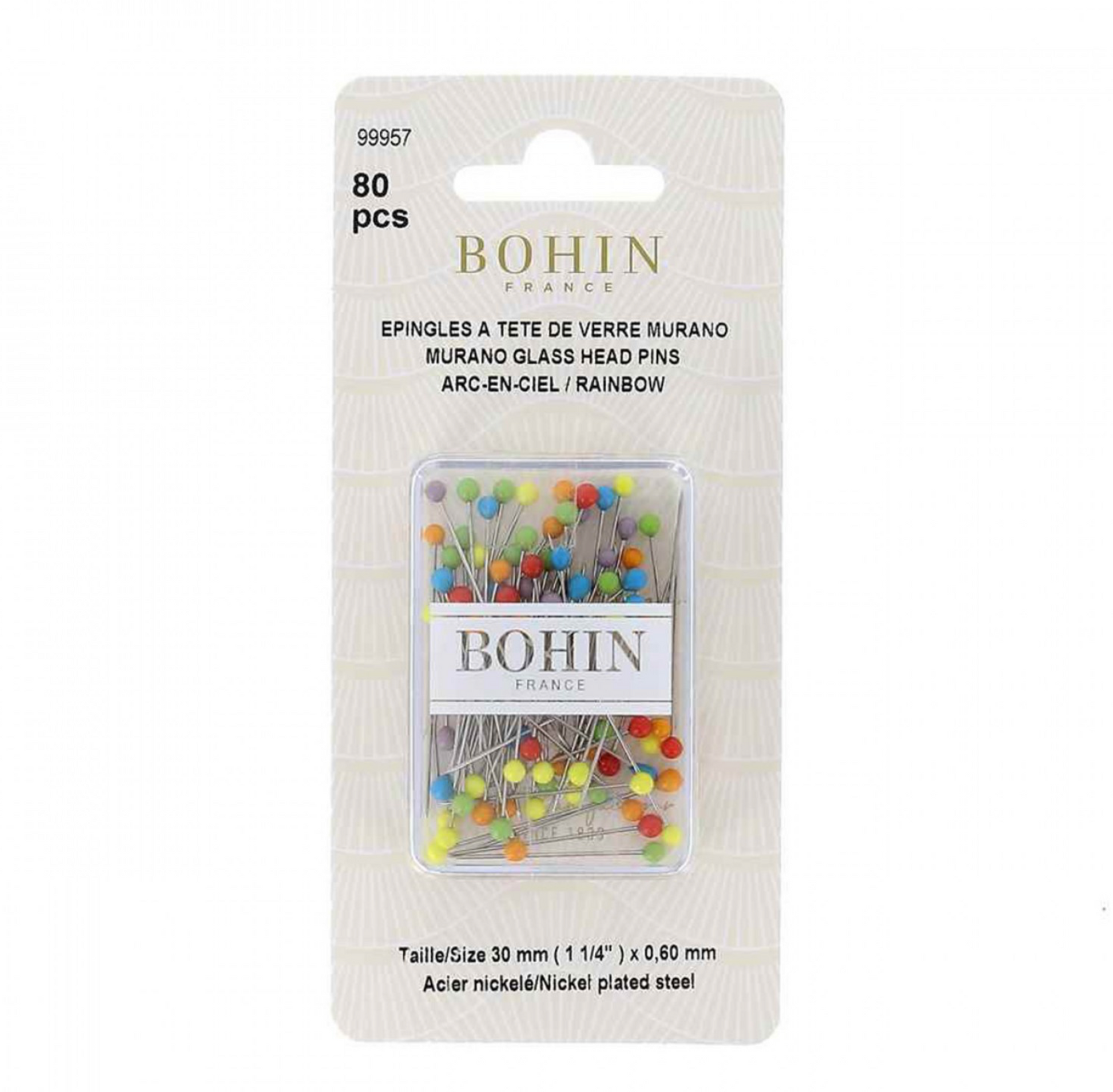 The little box of Murano glass head pins is back with a new assortment in the colors of the rainbow! Red, orange, yellow, green, blue and purple: a bright assortment for those who love colors! Made in our workshops in Normandy in Saint-Sulpice-sur-Risle, these exta-fine pins came to life on old machines, under the careful eyes of Sylvie, pin-maker at BOHIN France. Why choosing glass head pins? The density colors of the Murano glass are visible on fabrics, the ball protects the fibers of the fabric and, above all, the glass will not melt while ironing! Size 1-1/4in - 0.60mm 80 pins
