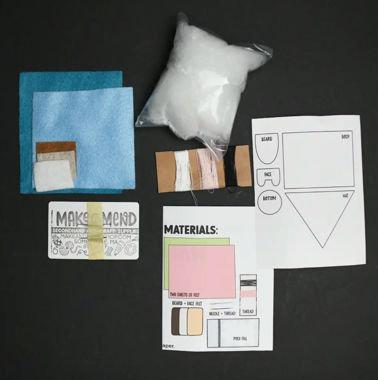 Hand sew a cute little gnome friend with this beginner project! This kit comes with a needle, pin, thread, 2 colors of felt for your gnome, a bag of fluff, multicultural skin tones and of course A BUNCH OF FUN! These little guys are simple and rewarding. Each kit makes one gnome but the pattern is easy to replicate.