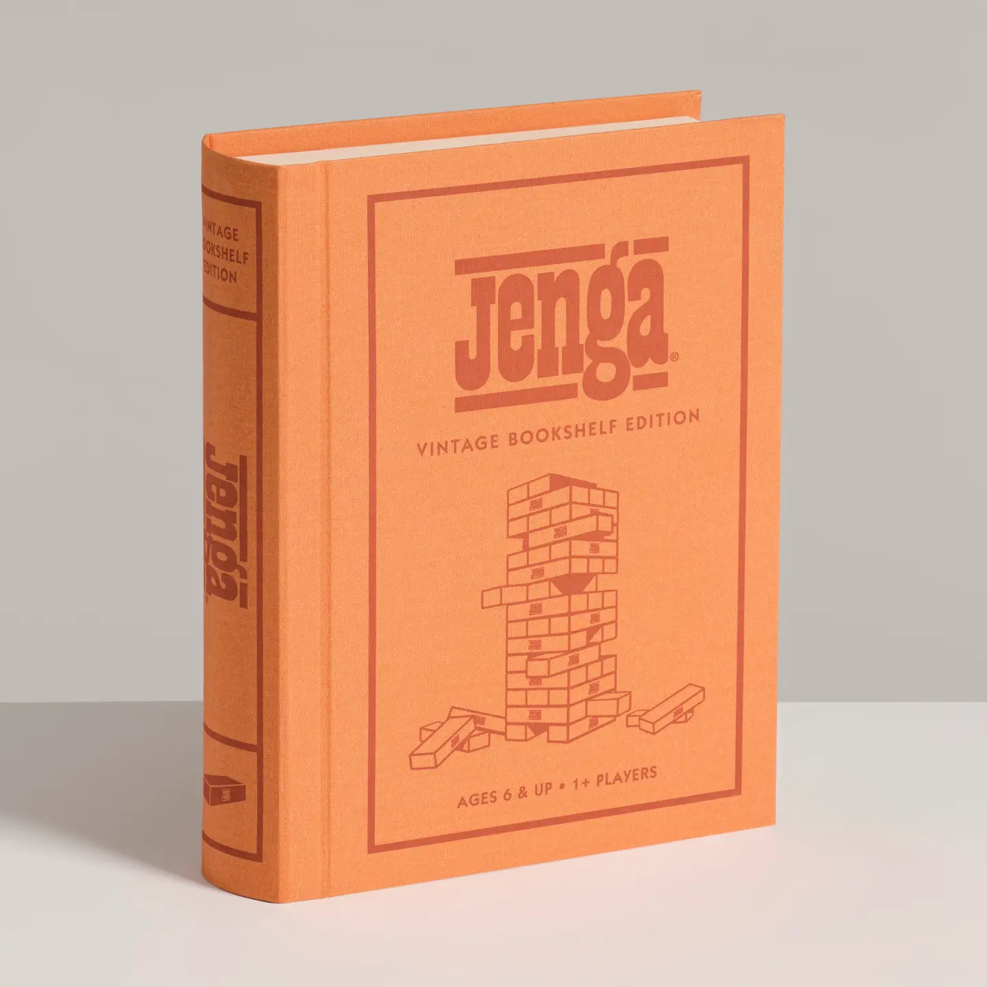 This Vintage Bookshelf Edition JENGA brand game will make family game night exciting and fun! How tall is too tall? You will find out when the tower falls. Your JENGA game requires dexterity and strategy that will have people on the edge of their seats. Pull the block, stack it on top, and hope the tower doesn’t crash down!