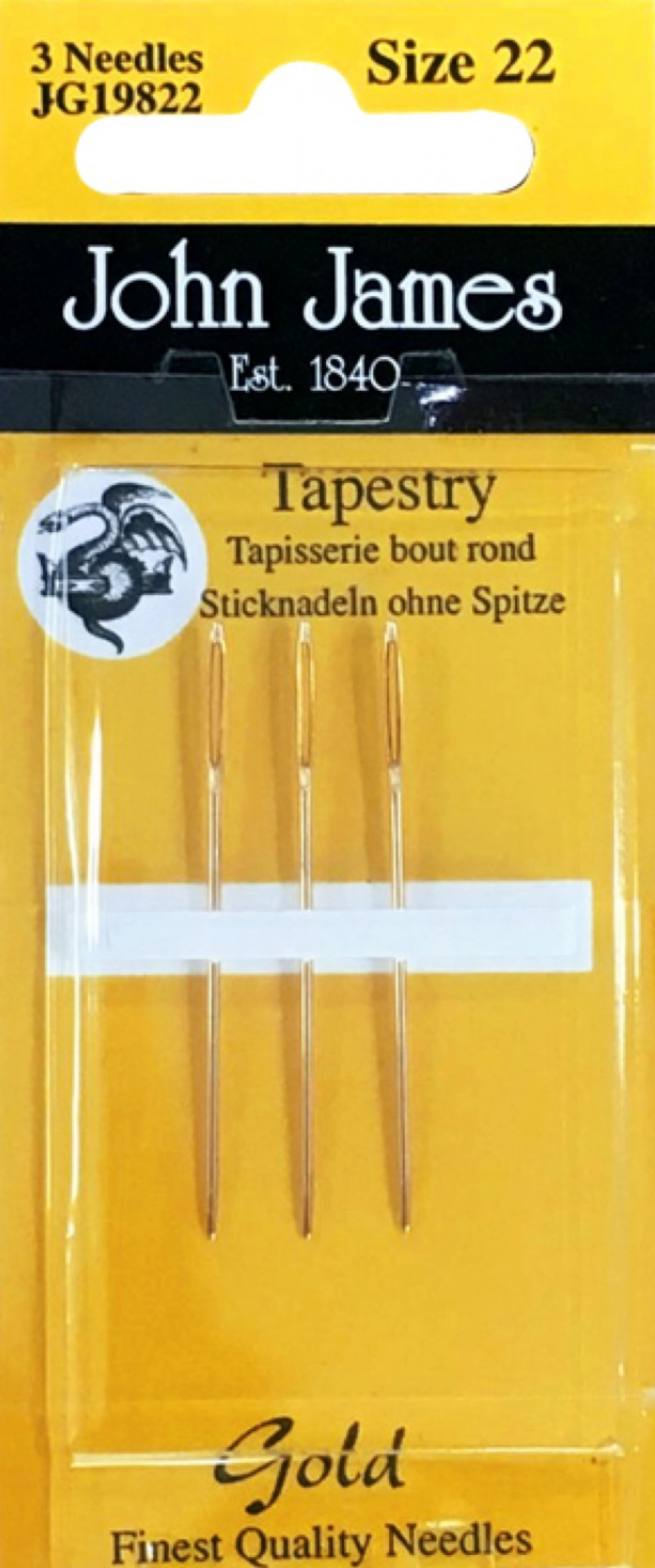 John James Tapestry/Cross Stitch Gold Size 22, three pc can be used for either tapestry or cross stitch. They are gold plated for durability.