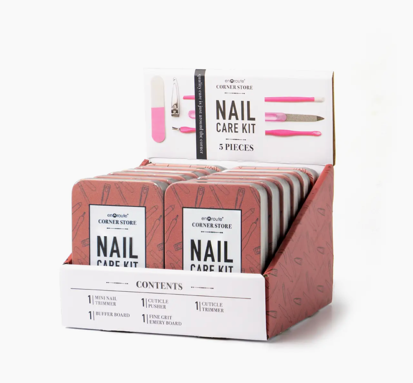 Does that hangnail have you hanging on by a thread? Give yourself a manicure on the go with the Corner Store Nail Kit. The 12 piece assortment ships in a free counter display.