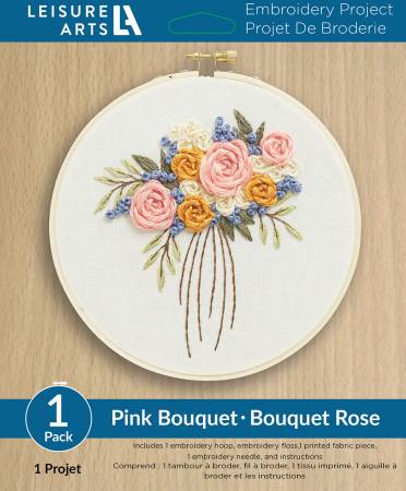 Leisure Arts Embroidery Kit 6" Pink Bouquet- Printed embroidery design features a collection of colorful, dimensional flowers. Includes 6" wooden embroidery hoop, embroidery floss, printed fabric, embroidery needle and full-color, step-by-step instruction